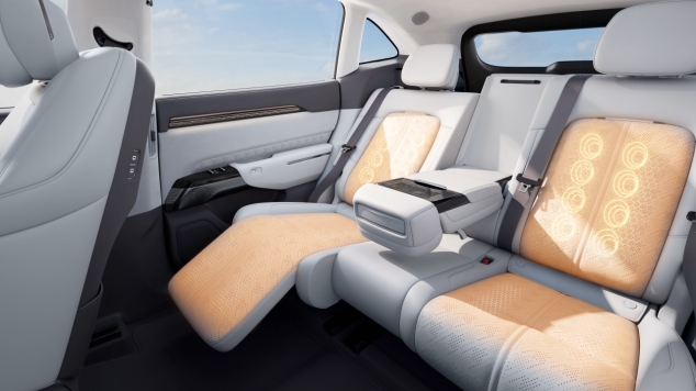 更奢侈的是,后排还配了电动躺椅、电动腿托、电动遮阳帘,甚至还有小桌板。孩子可以在路上写写画画,老人可以把腿托升起来眯一会儿。同级独有的石墨烯加热和热石理疗功能,开累了按一下,座椅自动加热按摩,比去按摩店还方便。