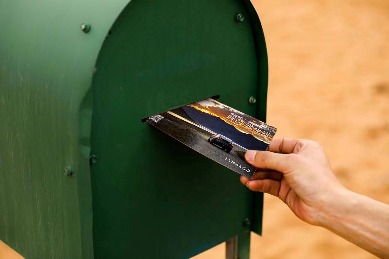 为给予用户独特的体验,此次跨界活动领克05与用户联名共创个性明信片,通过探索沙漠邮局,标记自我表达。一张张印有05车主爱车的明信片投递进沙漠邮局邮箱,将05“极·以为常”的态度由腾格里沙漠寄往全国各地。